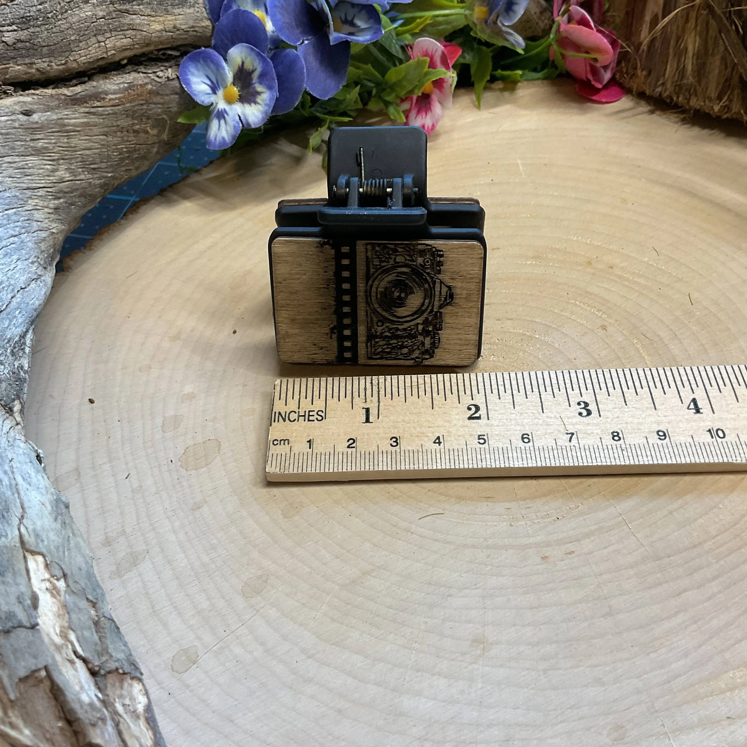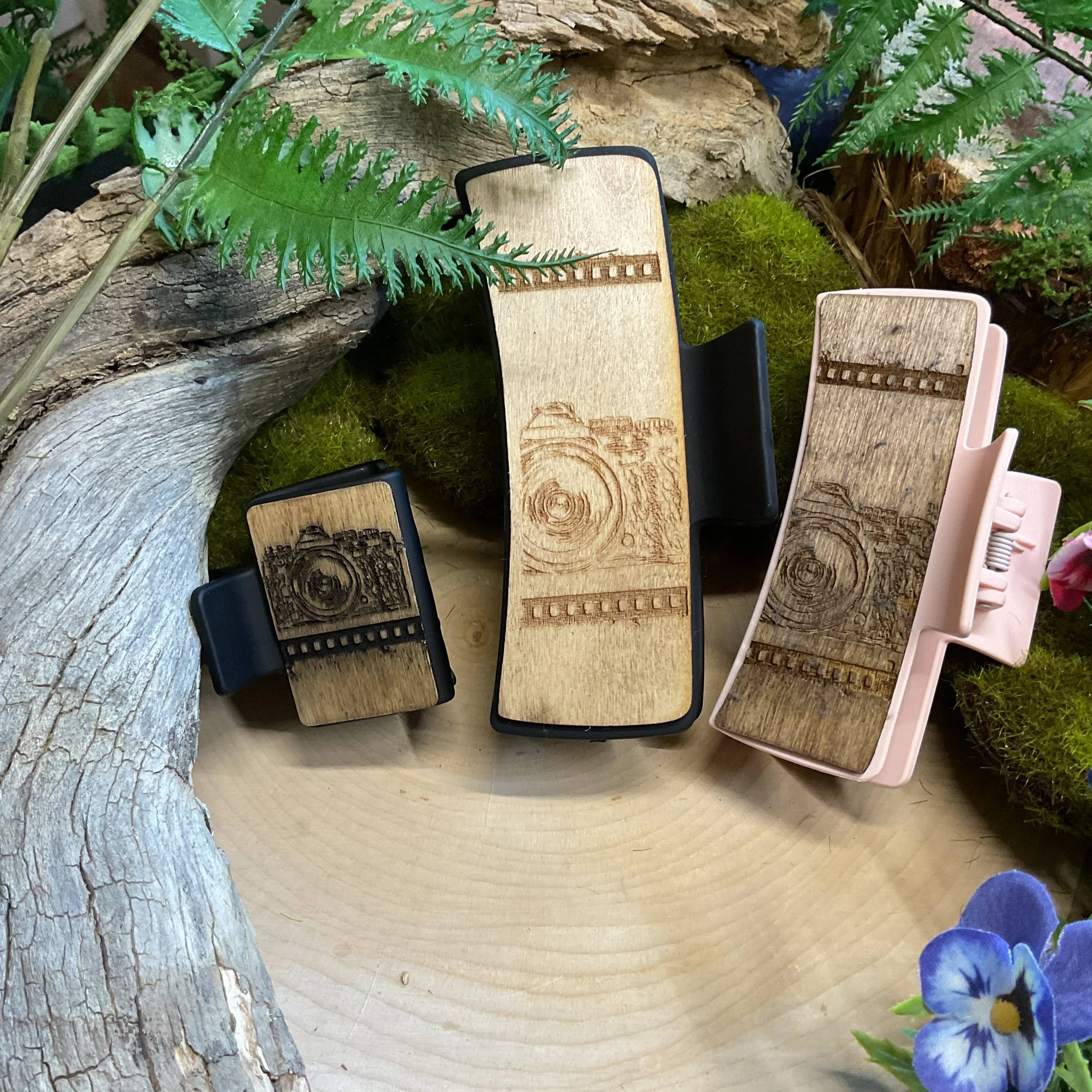 Each wooden clip has a laser-etched scene on birchwood and is painted with acrylic paint by us.